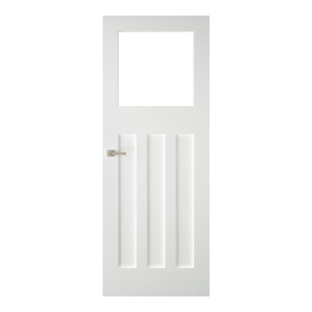 The toughened glass panel in this door provides durability and safety, ensuring it is built to last while giving you peace of mind. It allows natural light to flow between rooms, creating a fresh, open, and bright atmosphere throughout your home. The timeless 1930s design adds a classic contrast to modern interiors or enhances the charm of traditional spaces. Available in a range of widths, this door can be tailored to fit any frame or entrance size. Supplied primed, it saves time on decorating and is ready for finishing, allowing you to add a personal touch with your choice of colour or finish.