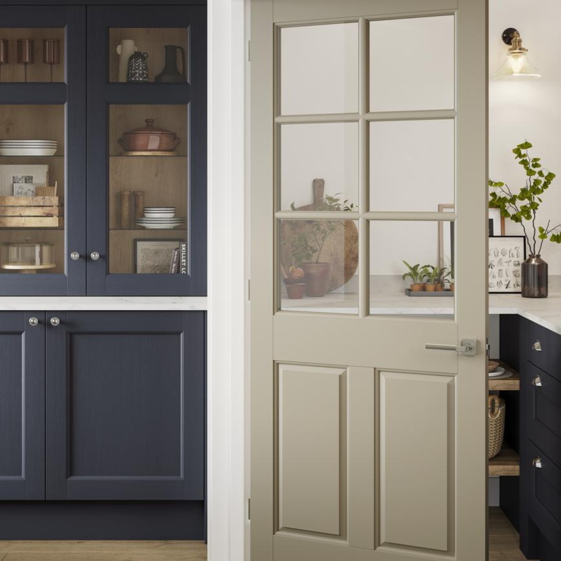 Glazed doors are perfect for maximising brightness, allowing natural light to flow between rooms. This elegant moulded design features six glass panes and a wood grain finish, offering a traditional look with timeless appeal. It can be painted to add a personalised touch to your home’s décor. Additionally, extra-wide versions are available to provide disabled access, ensuring both style and functionality.