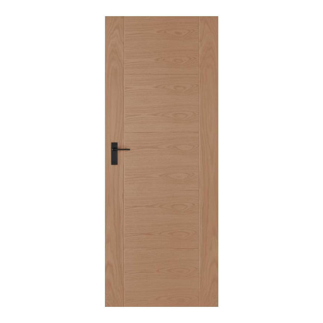 With its oak-veneered design, this internal door introduces an organic, natural look that aligns with the trend for earthy materials. The oak tone and five-panel style offer a versatile aesthetic, complementing a wide range of interior schemes. Available in multiple widths, it’s easy to find the right fit for most layouts. Pre-finished for convenience, this door can be installed immediately, making it a perfect choice for those looking to refresh a room quickly or speed up a makeover.