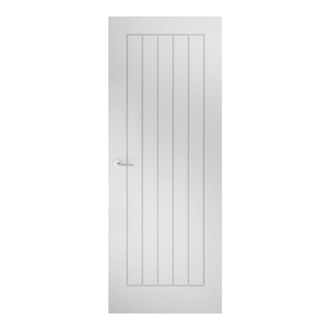 Tongue-and-groove patterns remain a popular choice for interiors, and this white door effortlessly brings a timeless look to your home. Constructed from durable particleboard, it is built to withstand daily wear and tear, ensuring longevity. Available in a wide range of sizes, including smaller widths that can be paired together to create a stylish double entryway.