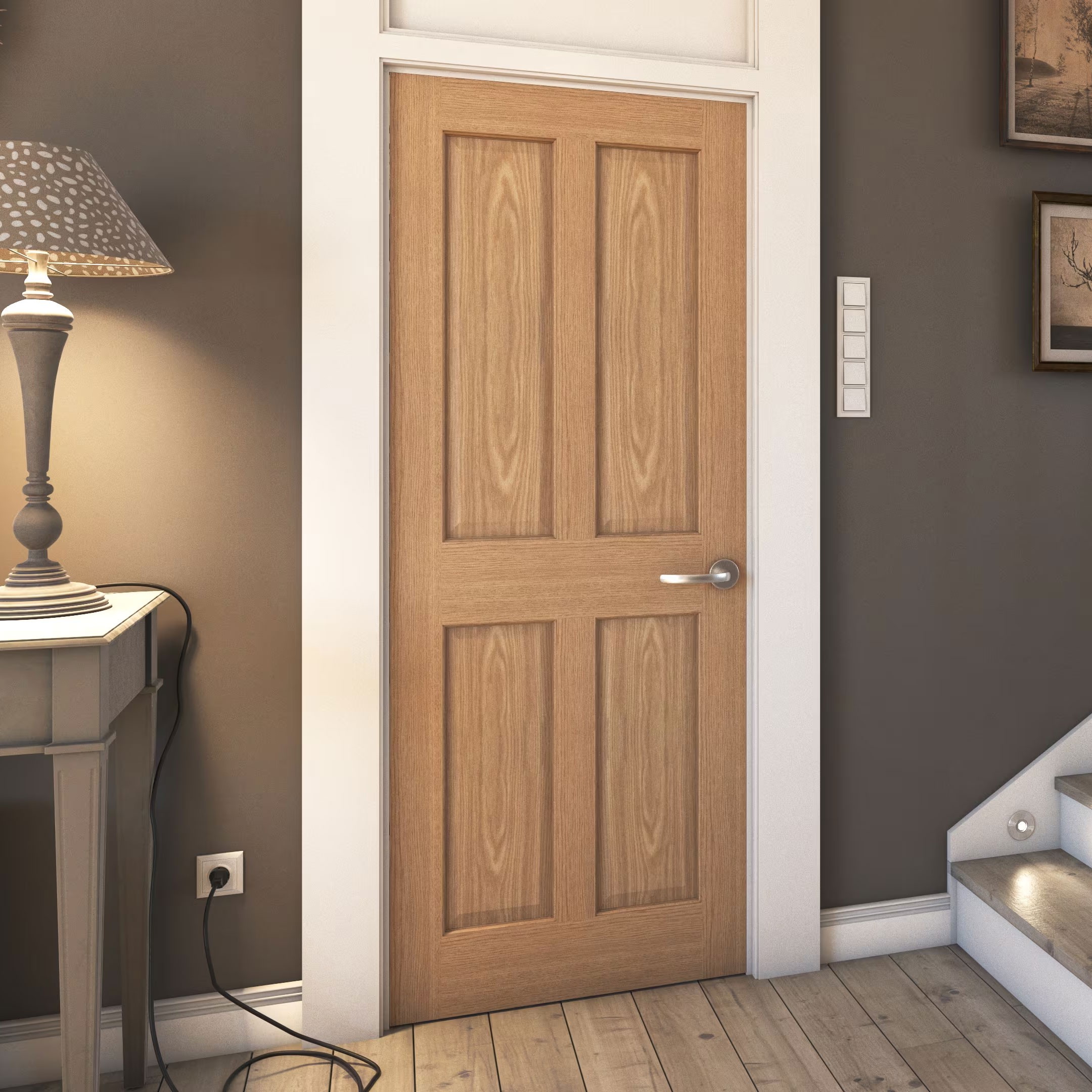 This prefinished Victorian 4 Panel Oak Internal Door combines timeless character with modern elegance. Crafted with a four-panel design and finished in high-quality quarter-cut American white oak veneer, it delivers a refined look that suits both period and contemporary interiors. The raised and fielded panels echo the grace of the Victorian era, while the pale oak finish gives the door a fresh, modern edge. Designed for convenience, the factory-applied finish provides a smooth, durable coating with no need for additional painting or staining.
